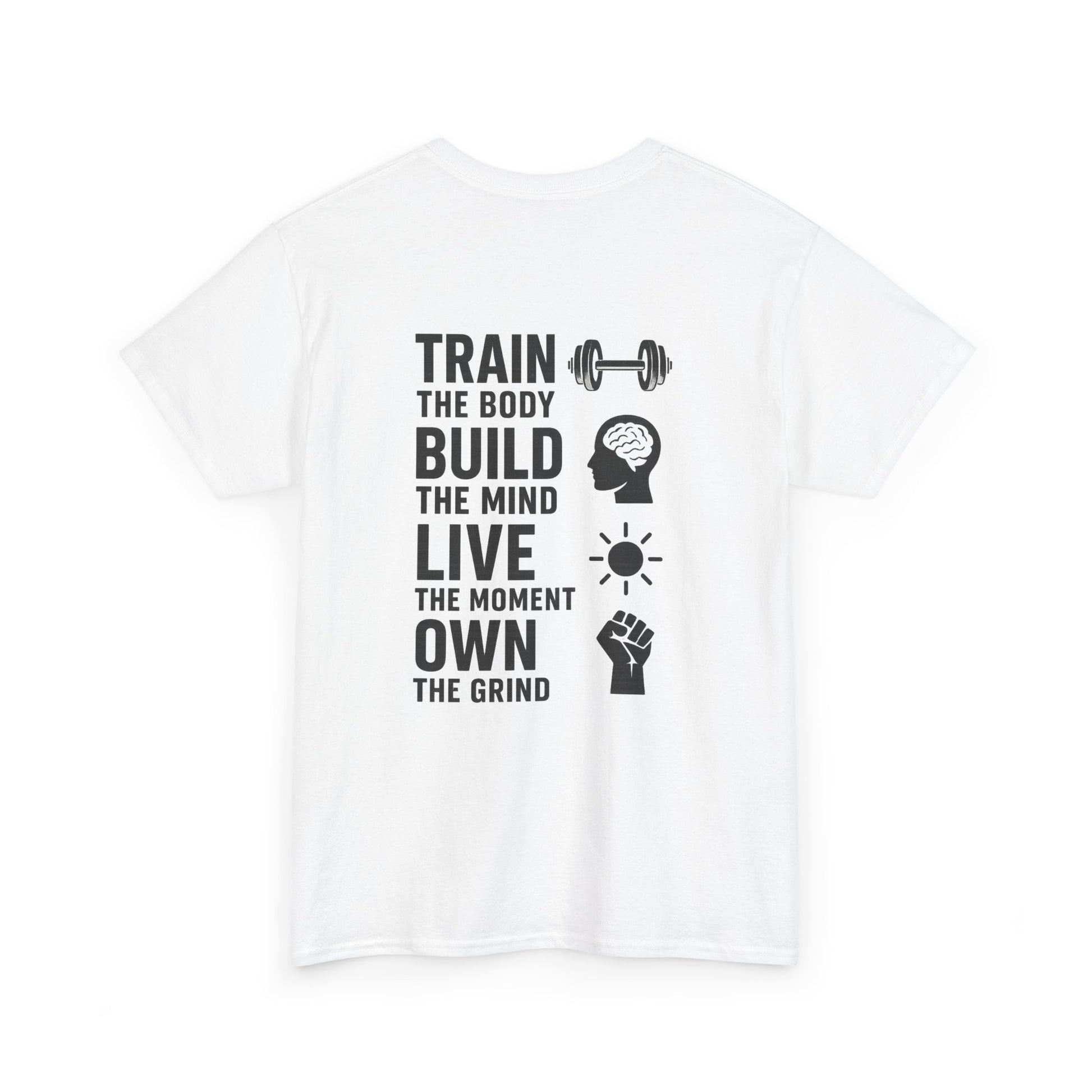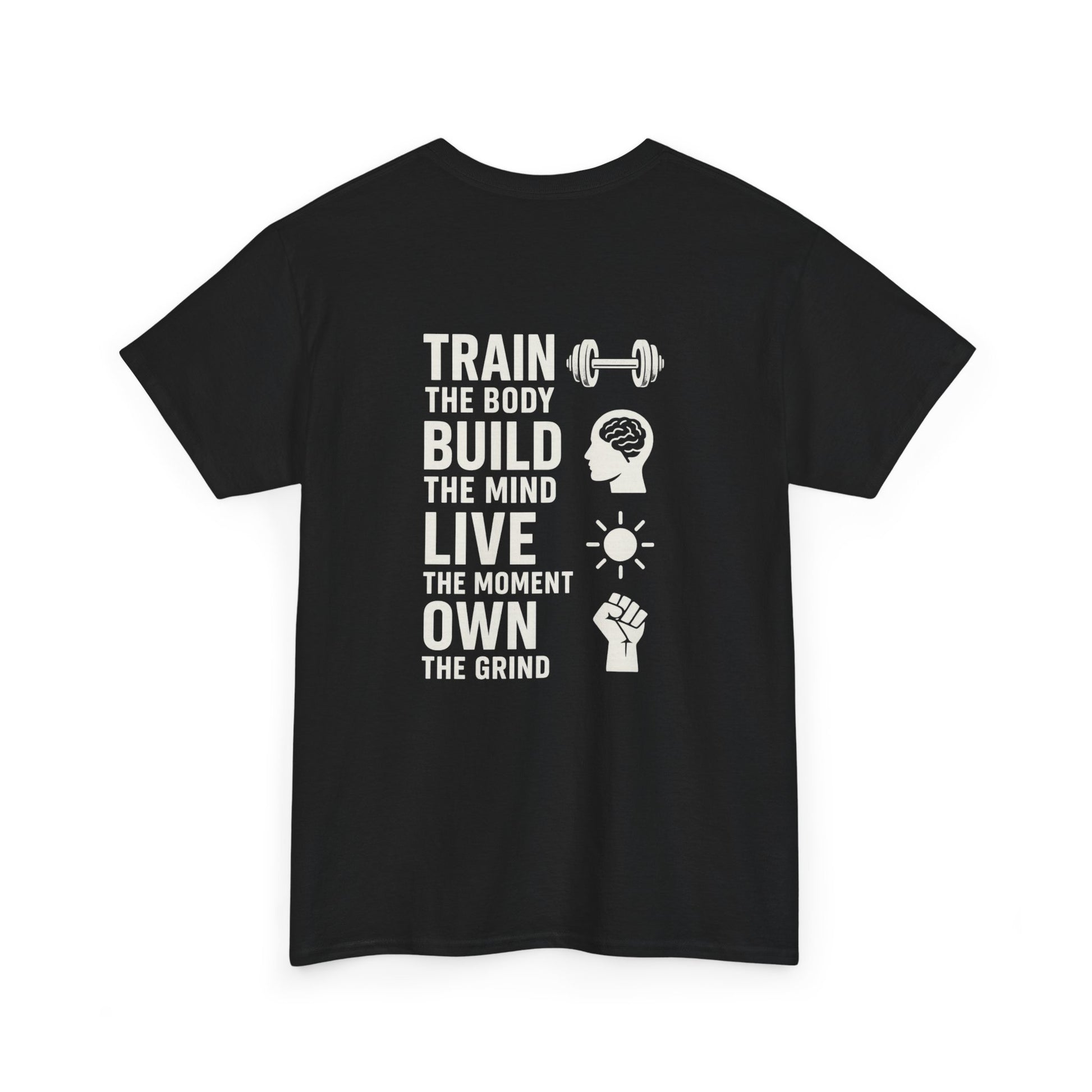 Train the Body. Build the Mind. Live the Moment. Own the Grind. Tee